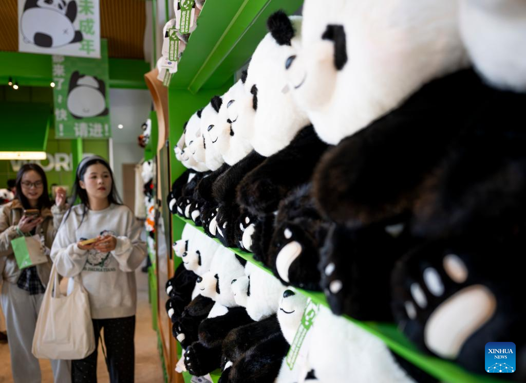 Tourists purchase panda-themed merchandise at the Panda World in Fuzhou, southeast China’s Fujian Province on Jan. 17, 2026. Five giant pandas, arriving from Chengdu, met the public at the reopened Fuzhou Panda World on Saturday, following a 20-day adaptation period. (Xinhua/Wei Peiquan)