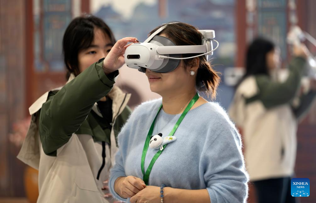 A visitor tries out a virtual reality headset at the Panda World in Fuzhou, southeast China’s Fujian Province on Jan. 17, 2026. Five giant pandas, arriving from Chengdu, met the public at the reopened Fuzhou Panda World on Saturday, following a 20-day adaptation period. (Xinhua/Wei Peiquan)