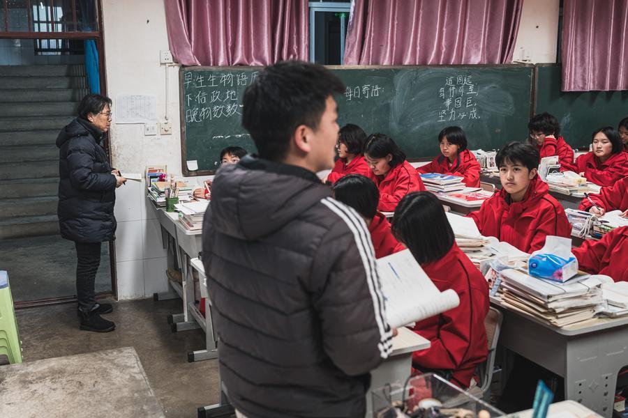 Zhang Guimei (3rd L) checks meal service at Huaping Senior High School for Girls in Huaping County, Lijiang City, southwest China’s Yunnan Province, Dec. 23, 2025. (Xinhua/Wang Guansen)Zhang Guimei (L) is pictured at a classroom at Huaping Senior High School for Girls in Huaping County, Lijiang City, southwest China’s Yunnan Province, Dec. 23, 2025. (Xinhua/Wang Guansen)Students head for the canteen after class at Huaping Senior High School for Girls in Huaping County, Lijiang City, southwest China’s Yunnan Province, Dec. 23, 2025. (Xinhua/Wang Guansen)A teacher grades exam papers at Huaping Senior High School for Girls in Huaping County, Lijiang City, southwest China’s Yunnan Province, Dec. 24, 2025. (Xinhua/Wang Guansen)A teacher tutors a student during the evening self-study class at Huaping Senior High School for Girls in Huaping County, Lijiang City, southwest China’s Yunnan Province, Dec. 23, 2025. (Xinhua/Wang Guansen)Students practice chorus at Huaping Senior High School for Girls in Huaping County, Lijiang City, southwest China’s Yunnan Province, Dec. 23, 2025. (Xinhua/Wang Guansen)Students have meals at the canteen of Huaping Senior High School for Girls in Huaping County, Lijiang City, southwest China’s Yunnan Province, Dec. 23, 2025. (Xinhua/Wang Guansen)An aerial drone photo taken on Dec. 24, 2025 shows a view of the Huaping Senior High School for Girls in Huaping County, Lijiang City, southwest China’s Yunnan Province. (Xinhua/Wang Guansen)■