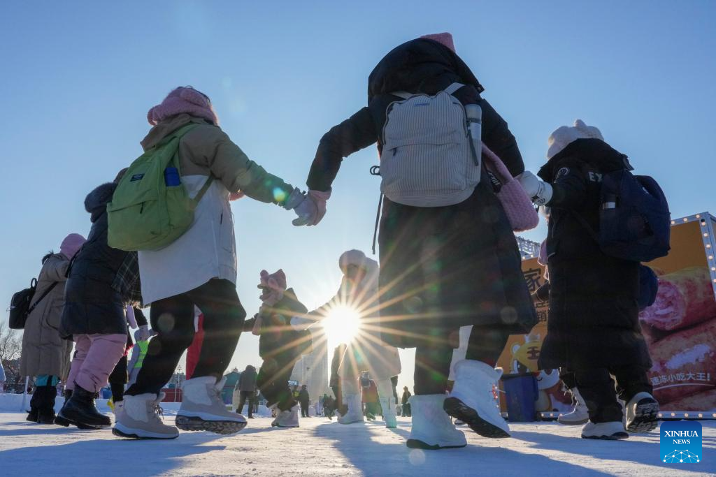 Frozen Songhua River in Harbin draws crowds for ice-and-snow-themed amusements-Xinhua