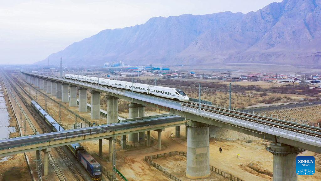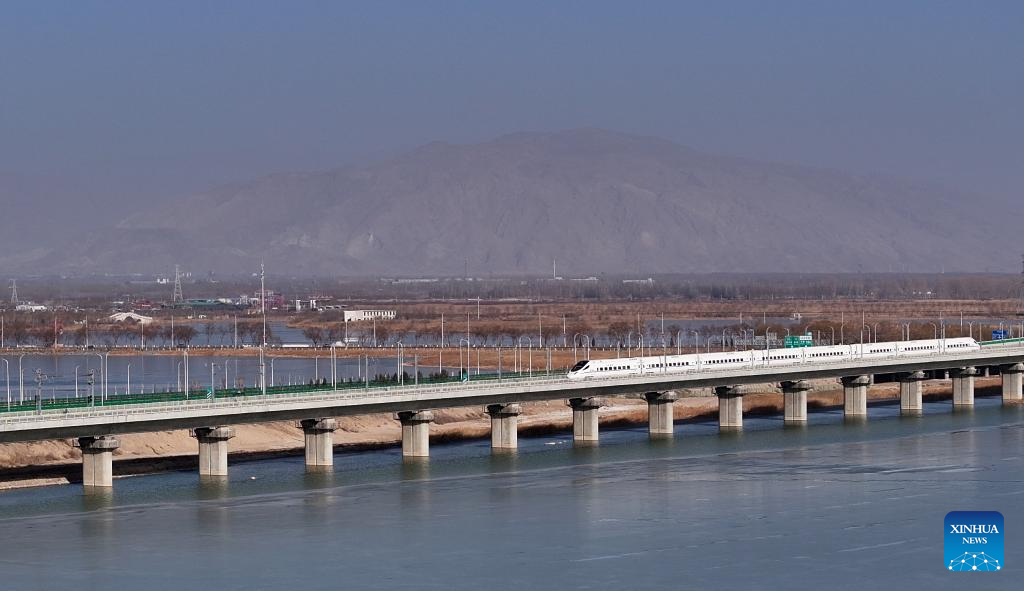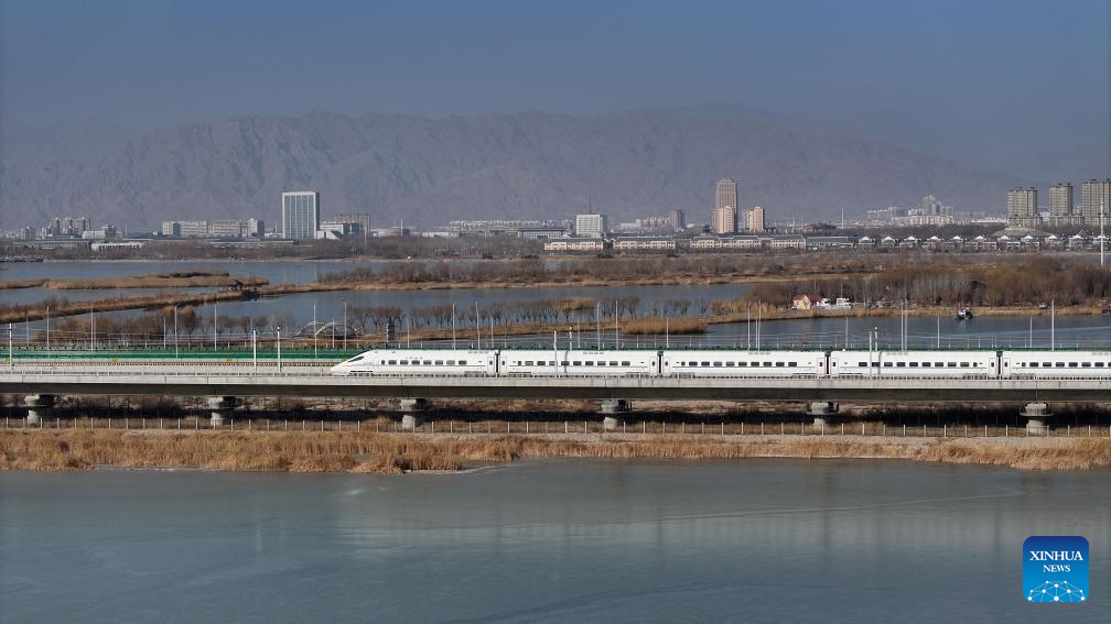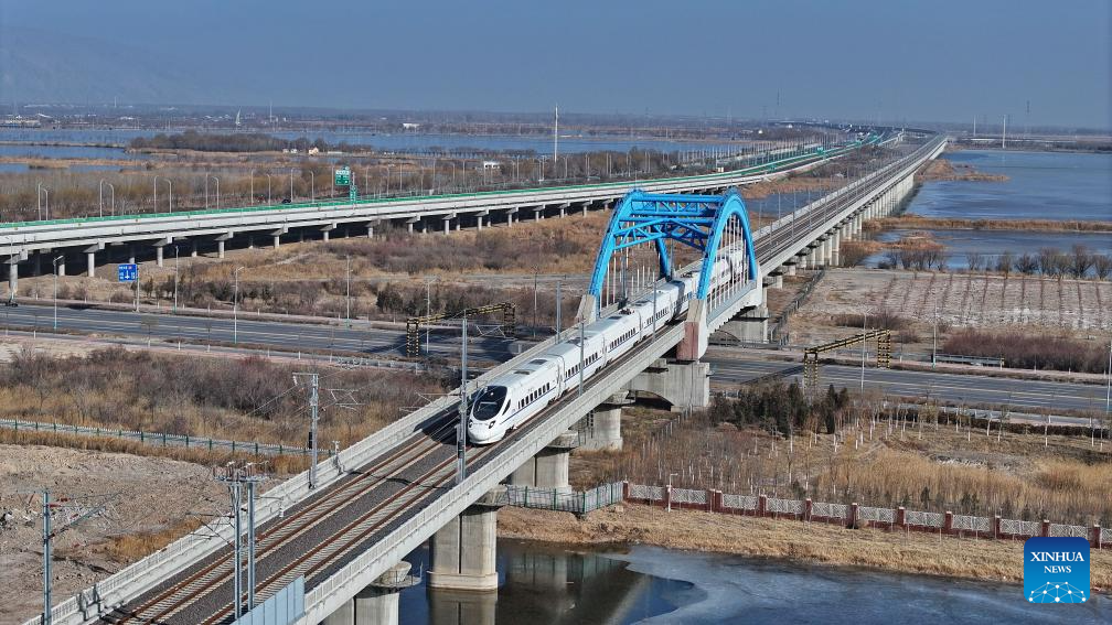 This railway connects Baotou in north China’s Inner Mongolia Autonomous Region with Yinchuan in northwest China’s Ningxia Hui Autonomous Region, enhancing the high-speed railway network in northwest China. (Xinhua/Wang Peng)