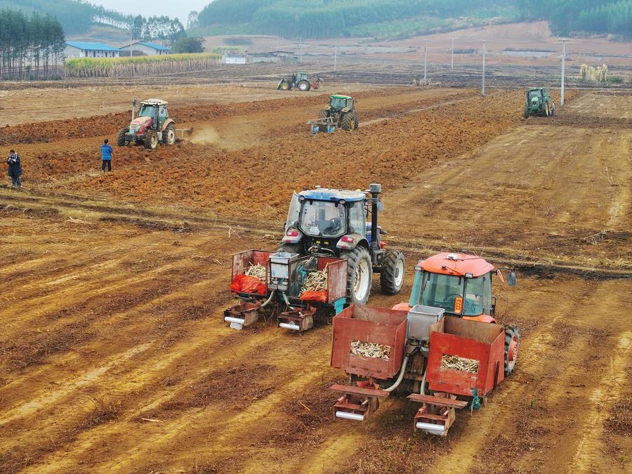 During planting, farmers are assisted by the BeiDou Navigation Satellite System to ensure precise row spacing, down to the centimeter. When it comes to field management, meanwhile, agricultural drones can complete the spraying of pesticides over dozens of mu of sugarcane fields in just one hour.