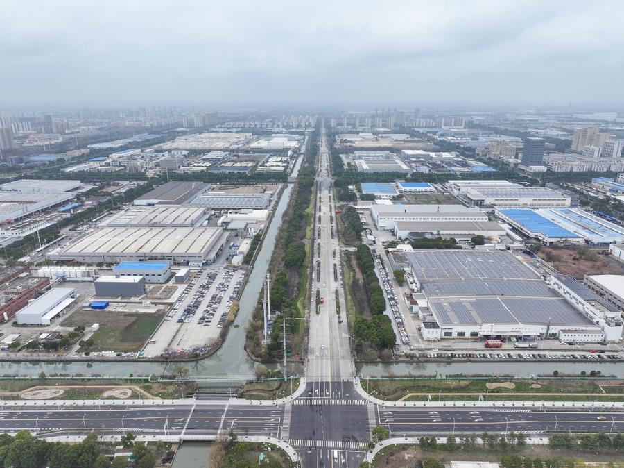 An aerial drone photo taken on Feb. 25, 2026 shows a view of the German enterprise cluster area in Taicang, east China’s Jiangsu Province. (Xinhua/Ji Chunpeng)