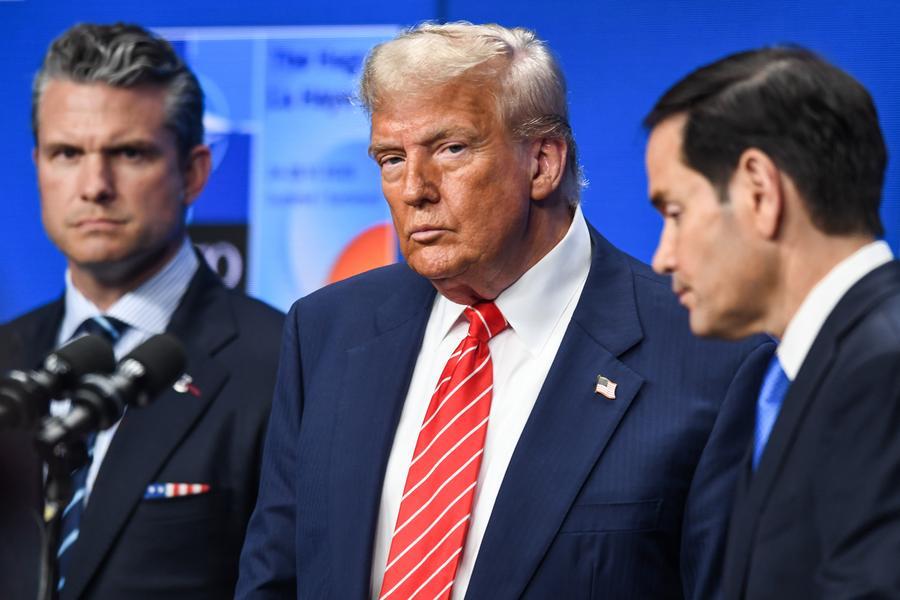 U.S. President Donald Trump (C) attends a press conference following the NATO summit in The Hague, the Netherlands, on June 25, 2025. (Xinhua/Peng Ziyang)
