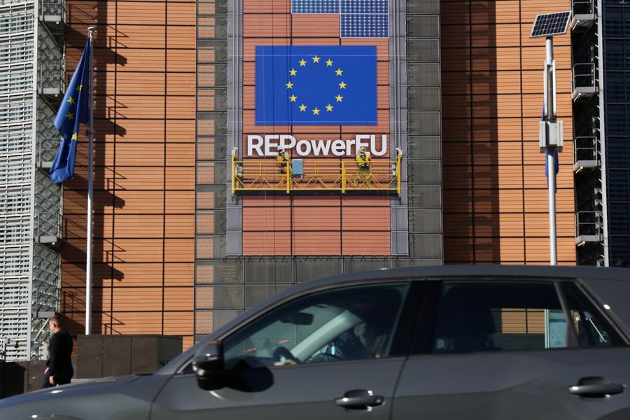 A vehicle passes the building of the European Commission in Brussels, Belgium, Oct. 18, 2022.(Xinhua/Zheng Huansong)