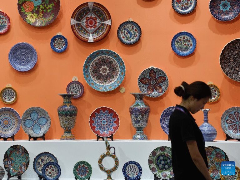 A visitor visits the exhibition area of Türkiye during the 2025 China Jingdezhen International Ceramic Expo in Jingdezhen, east China’s Jiangxi Province, Oct. 18, 2025. The 2025 China Jingdezhen International Ceramic Expo opened on Saturday in Jingdezhen, an eastern Chinese city famed as the “porcelain capital,” attracting more than 1,000 buyers from home and abroad. (Xinhua/Zhou Mi)