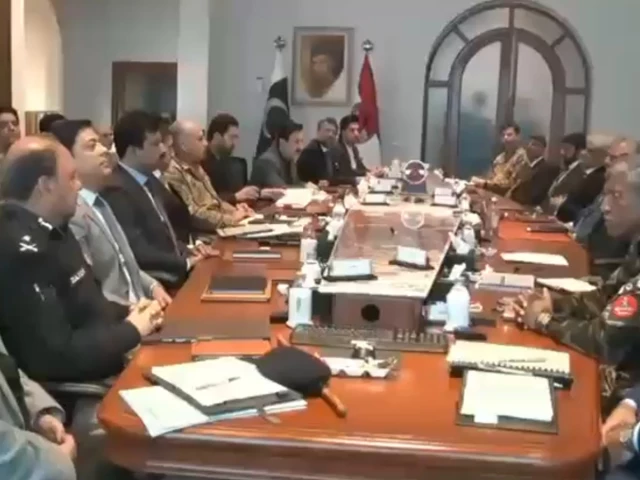 A high-level security meeting in Peshawar on Tuesday. — SCREENGRAB