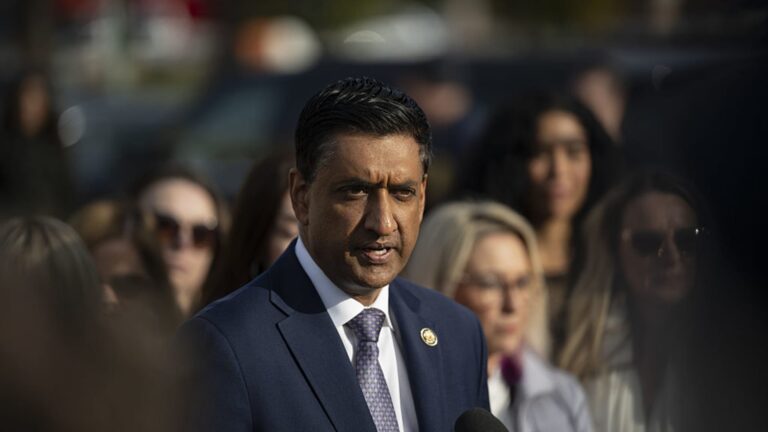 U.S. Representative Ro Khanna speaks during a press conference at the U.S. Capitol in Washington, D.C., on Nov. 18, 2025.