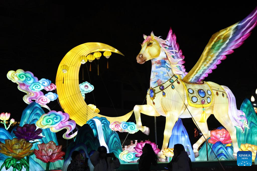 This photo taken on Feb. 14, 2026 shows a lantern fair celebrating the upcoming Chinese New Year in Lanzhou, northwest China’s Gansu Province. (Xinhua/Chen Bin)