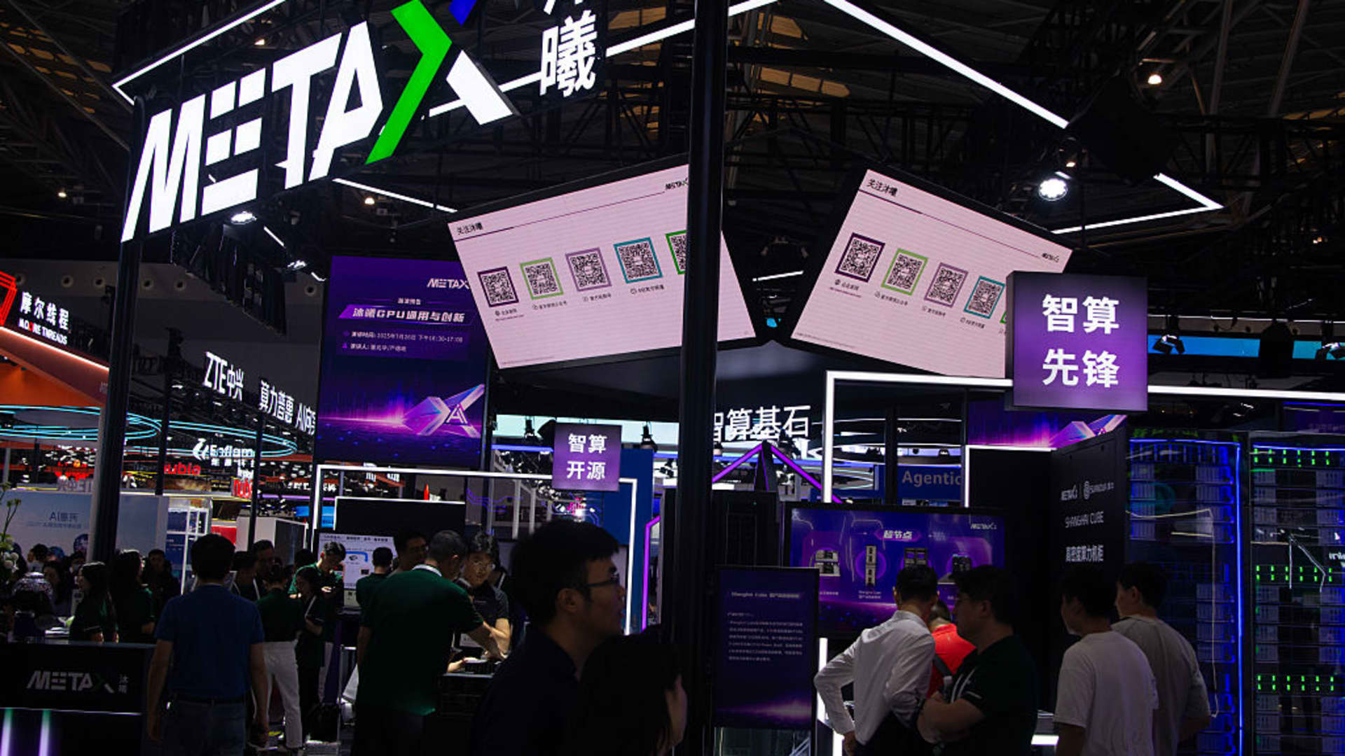 MetaX booth at the Shanghai New Expo Center in Shanghai, China, on July 26, 2025. (Photo by Ying Tang/NurPhoto via Getty Images)