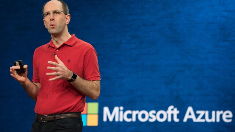 Scott Guthrie, executive vice president of cloud and enterprise at Microsoft, speaks at the Microsoft Build developer conference in Seattle on May 7, 2018. The Build conference, marking its second consecutive year in Seattle, is expected to put emphasis on the company’s cloud technologies and the artificial intelligence features within those services.
