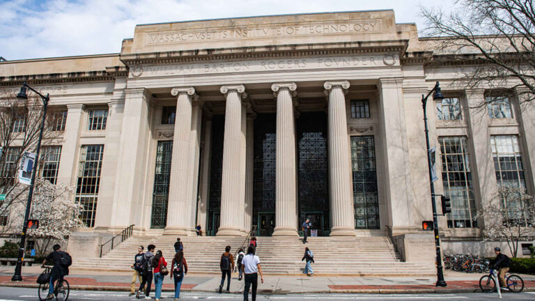 People walk on the campus of Massachusetts Institute of Technology in Cambridge, Massachusetts, April 15, 2025.