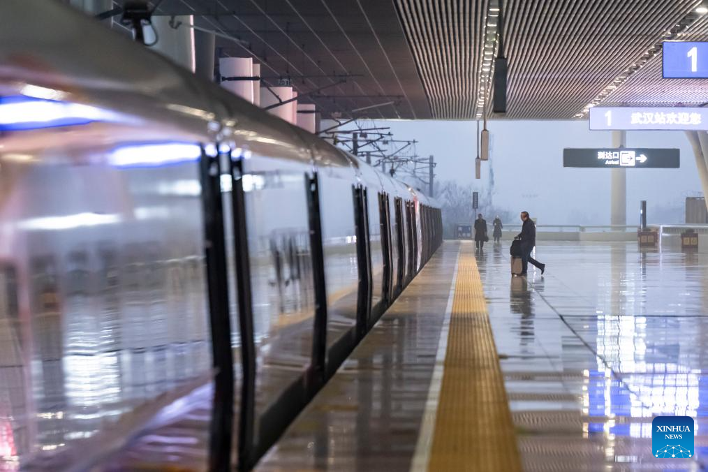 A train departs the Wuhan Railway Station in Wuhan, central China’s Hubei Province, on Jan. 26, 2026. A new nationwide train schedule has taken effect in China from Jan. 26, 2026 with improved passenger and freight transport capacity and efficiency. (Xinhua/Wu Zhizun)