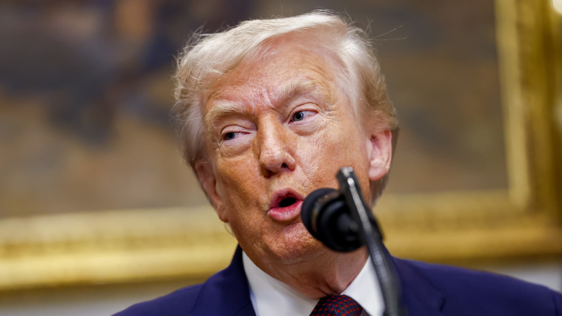 US President Donald Trump during an announcement in the Roosevelt Room of the White House in Washington, DC, US, on Friday, Dec. 19, 2025.