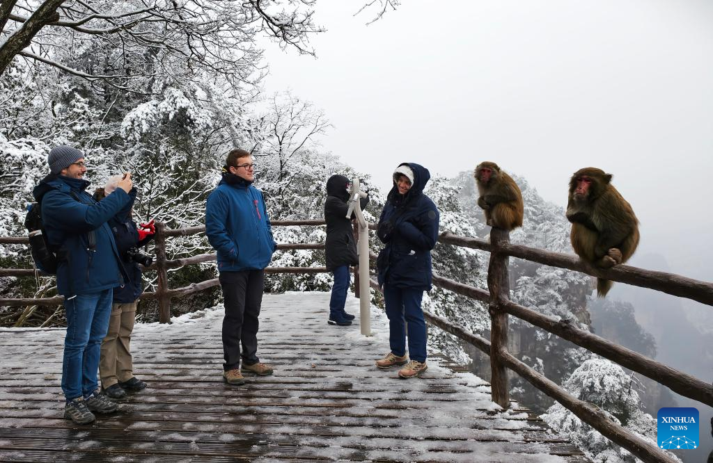 Italian tourists visit the Zhangjiajie National Forest Park in central China’s Hunan Province, Jan. 2, 2026. (Photo by Wu Yongbing/Xinhua)