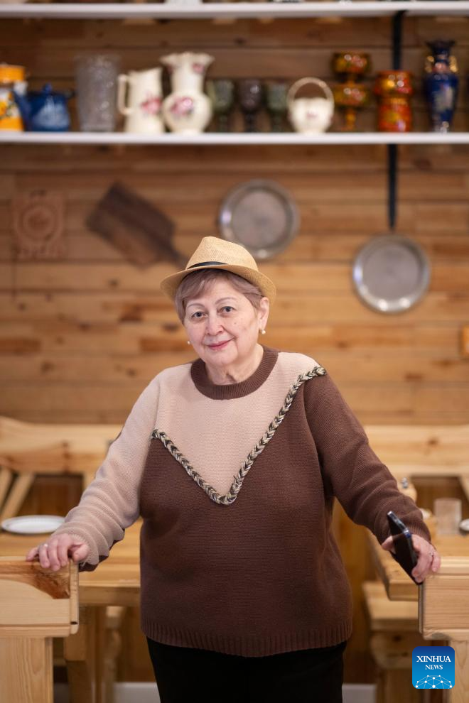 Oganesian Aida poses for a photo at a restaurant in Suifenhe City, northeast China’s Heilongjiang Province, Jan. 8, 2026. The 62-year-old Oganesian Aida from Russia settled in Suifenhe two years ago at the invitation of her Chinese friend. (Xinhua/Zhang Tao)