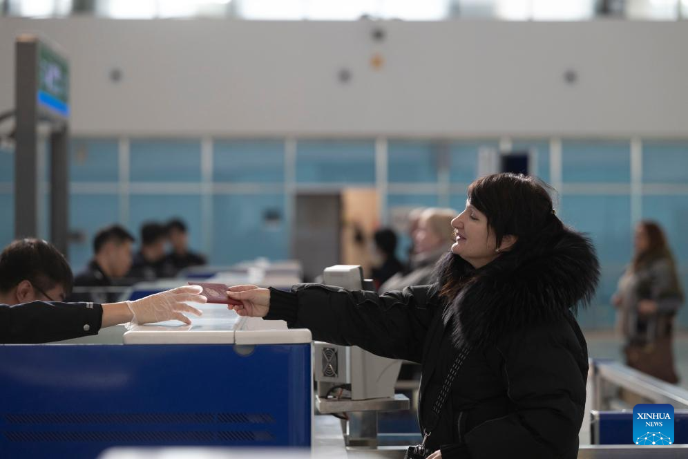 An inbound passenger goes through border crossing procedures at a joint inspection hall of the Suifenhe highway port in Suifenhe, northeast China’s Heilongjiang Province, on Jan. 8, 2026. (Xinhua/Zhang Tao)