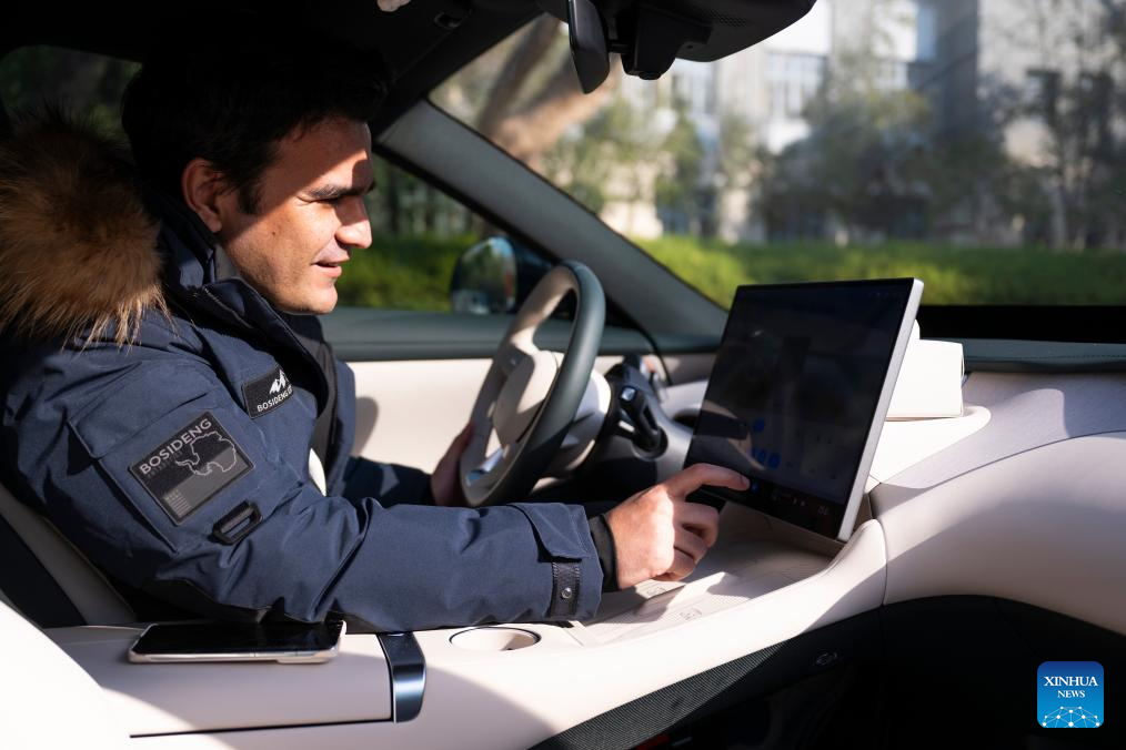 Mauri Joseph Tualaulelei tries a Chinese new energy vehicle (NEV) in Wuhan, central China’s Hubei Province, Jan. 8, 2026. Tualaulelei from Samoa is pursuing a master’s degree in Physical Education at Central China Normal University. He has been in China since 2017. (Xinhua/Wu Zhizun)