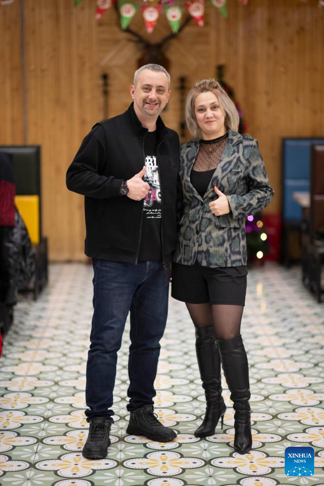 Artem Shishov (L) and his girlfriend Ira Klimena pose for a photo in Suifenhe, northeast China’s Heilongjiang Province, Jan. 8, 2026. Artem Shishov from Russia’s Vladivostok is a local internet celebrity. He moved to Suifenhe in China’s Heilongjiang three years ago and is engaged in foreign trade and tourism-related work. (Xinhua/Zhang Tao)