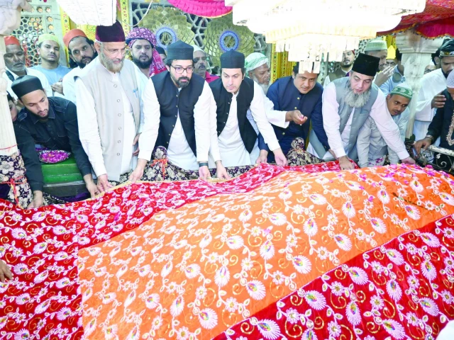 The first secretary at the Pakistan High Commission in New Delhi, Shoaib Sarwar, and other diplomats on Friday laid the traditional chaddar at the shrine of Hazrat Khwaja Nizamuddin Auliya (RA) whose 722nd urs is being celebrated these days.