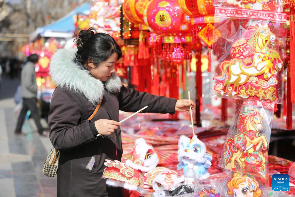 People select decorations for the upcoming Spring Festival in Hebi City, central China’s Henan Province, Feb. 7. 2026.