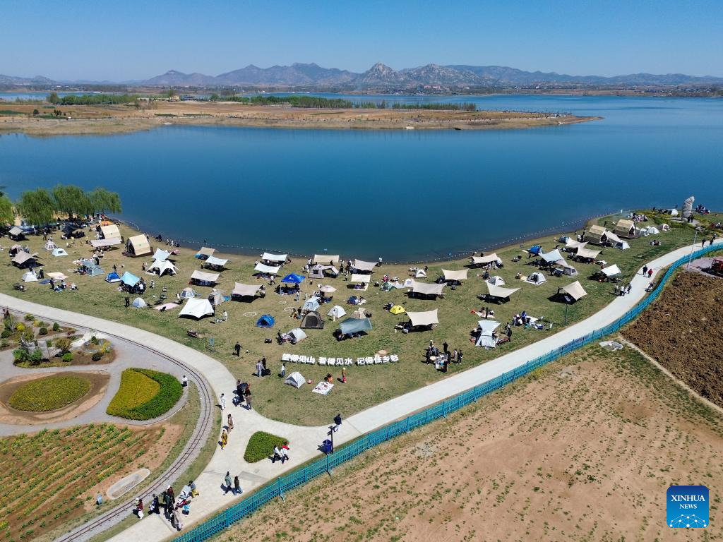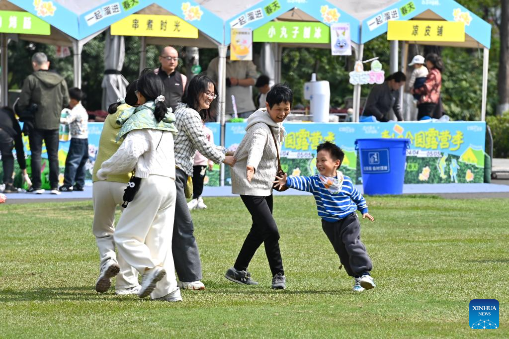 People enjoy their leisure time at a camping site during the Qingming Festival holiday in Longyang Town of Tengzhou City, east China’s Shandong Province, April 4, 2026. (Xinhua/Zhu Zheng)
