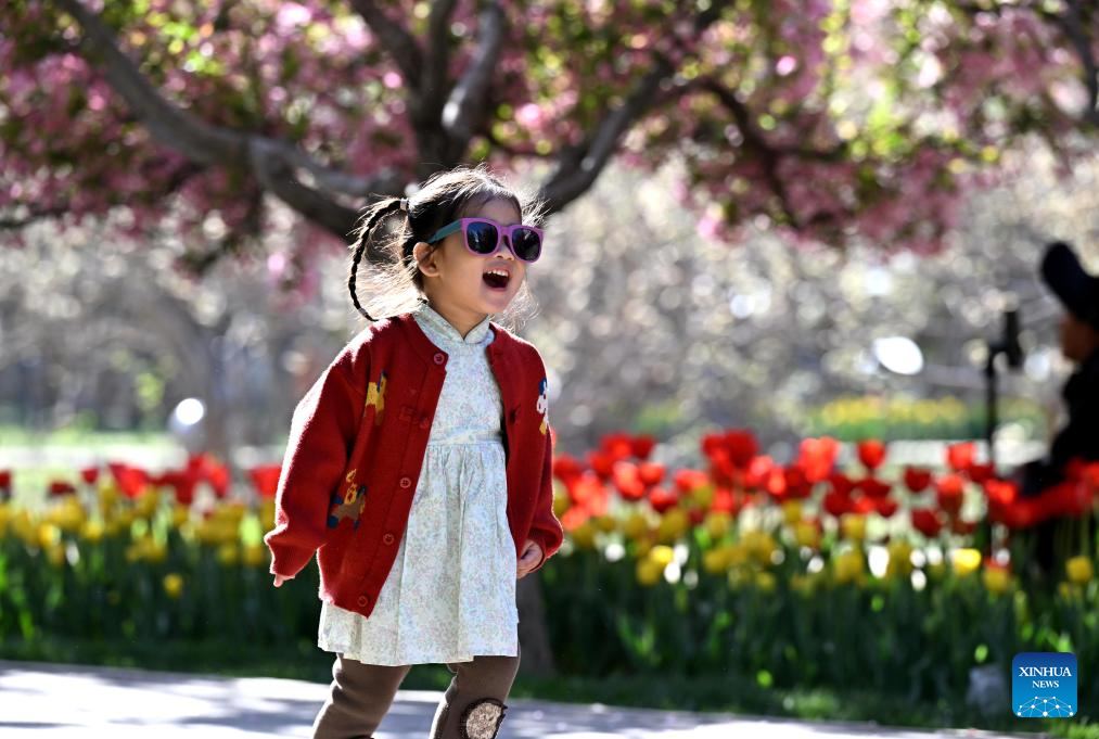 Tourists enjoy their leisure time at a botanical garden during the Qingming Festival holiday in Shijiazhuang, north China’s Hebei Province, April 4, 2026. (Photo by Chen Qibao/Xinhua)