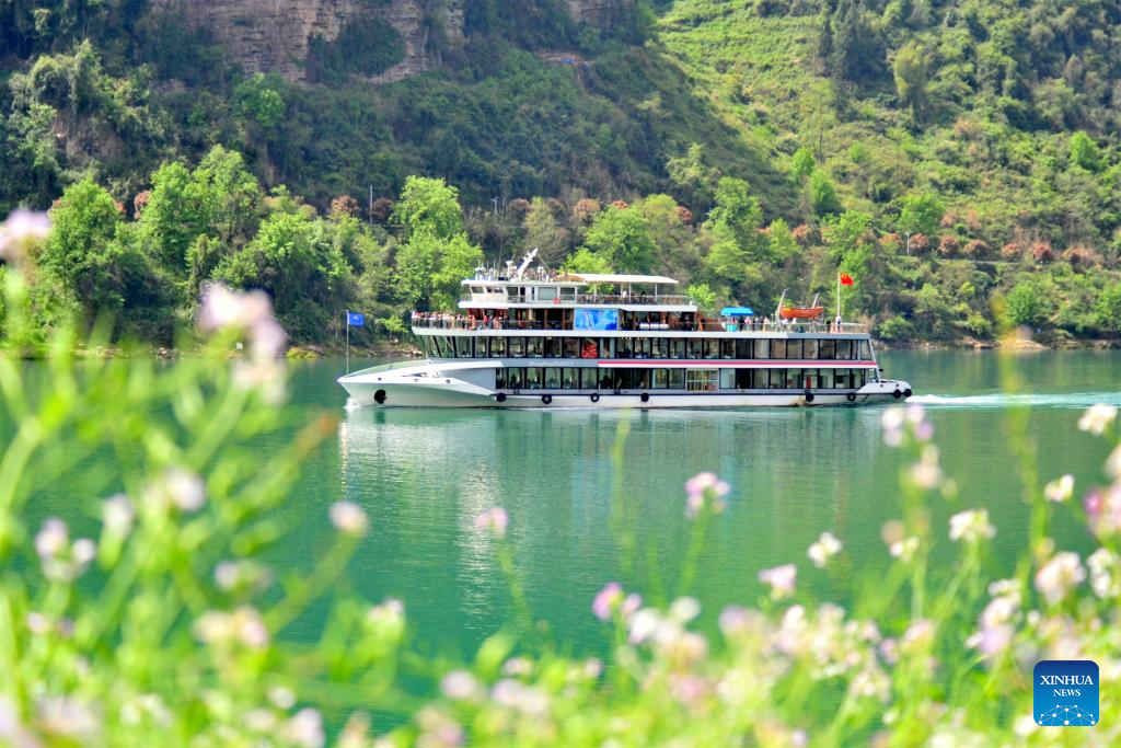People take a boat for sightseeing in the Xiling Gorge, one of the Three Gorges on the Yangtze River, during the Qingming Festival holiday in central China’s Hubei Province, April 4, 2026. (Photo by Zhang Guorong/Xinhua)