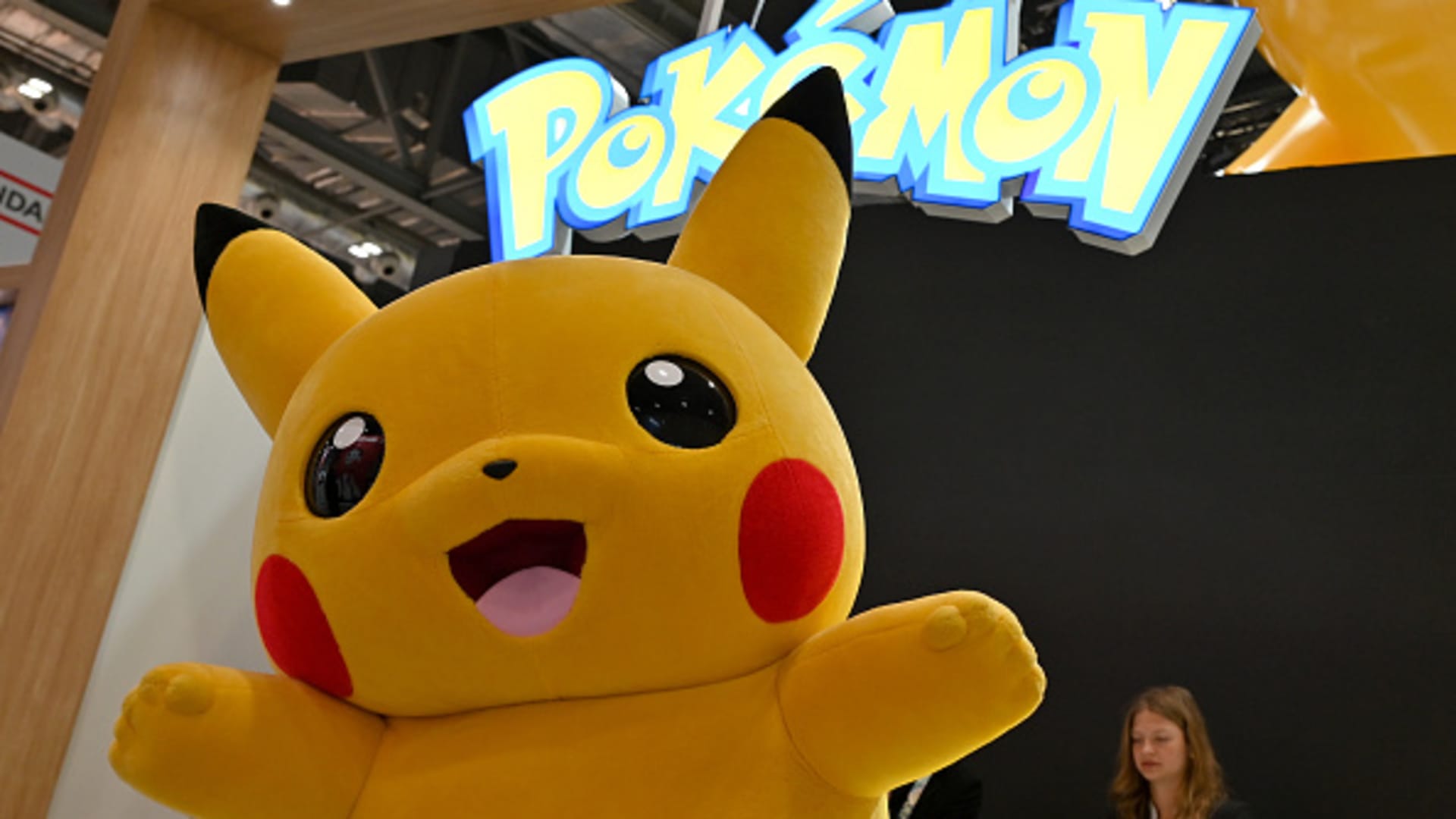A Pikachu Character poses at the Pokemon stand during the Brand Licensing Europe at ExCel on October 04, 2023 in London, England.