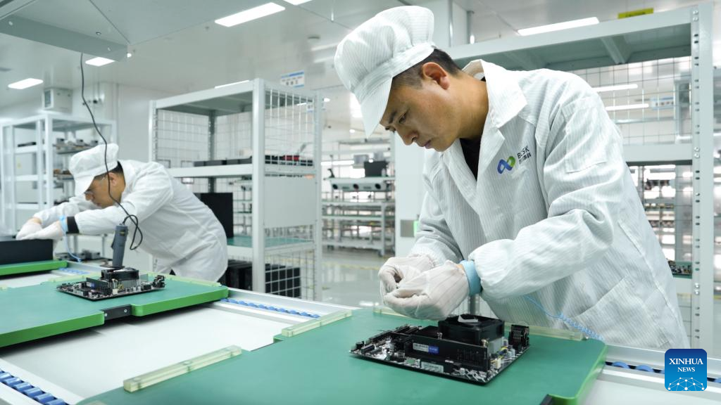 Employees assemble computer servers at a digital technology company in Hohhot, north China’s Inner Mongolia Autonomous Region, on Jan. 20, 2025. (Photo by Zhang Jiahui/Xinhua)
