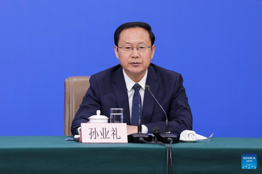 Sun Yeli, minister of culture and tourism, attends a press conference for the fourth session of the 14th National People’s Congress (NPC) on people’s livelihood in Beijing, capital of China, March 7, 2026. (Xinhua/Wang Xi)