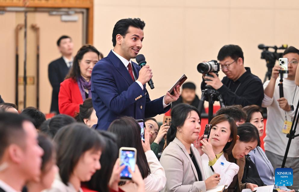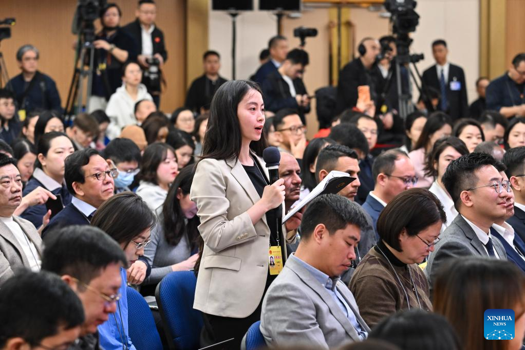 A journalist asks a question at a press conference for the fourth session of the 14th National People’s Congress (NPC) on people’s livelihood in Beijing, capital of China, March 7, 2026. (Xinhua/Li Xin)
