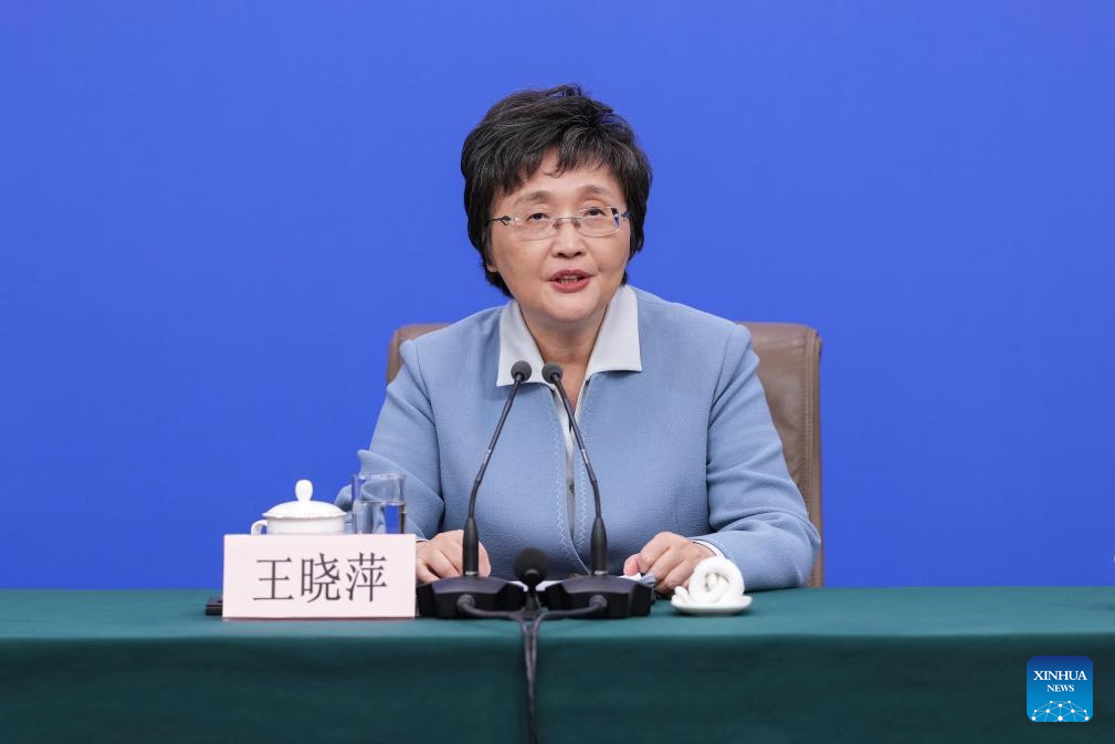Wang Xiaoping, minister of human resources and social security, attends a press conference for the fourth session of the 14th National People’s Congress (NPC) on people’s livelihood in Beijing, capital of China, March 7, 2026. (Xinhua/Wang Xi)