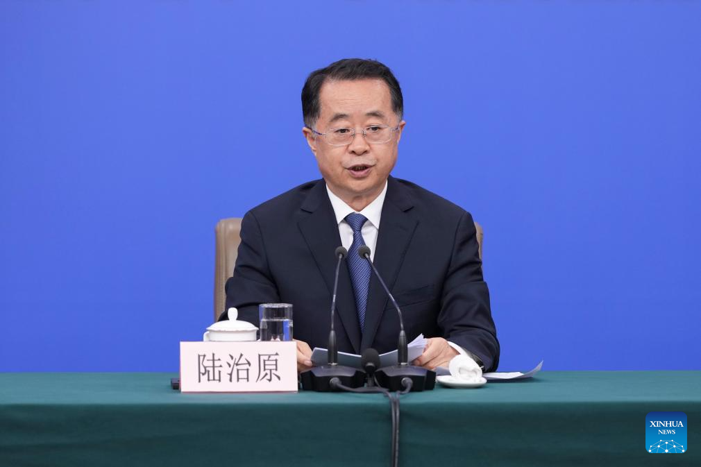 Lu Zhiyuan, minister of civil affairs, attends a press conference for the fourth session of the 14th National People’s Congress (NPC) on people’s livelihood in Beijing, capital of China, March 7, 2026. (Xinhua/Wang Xi)