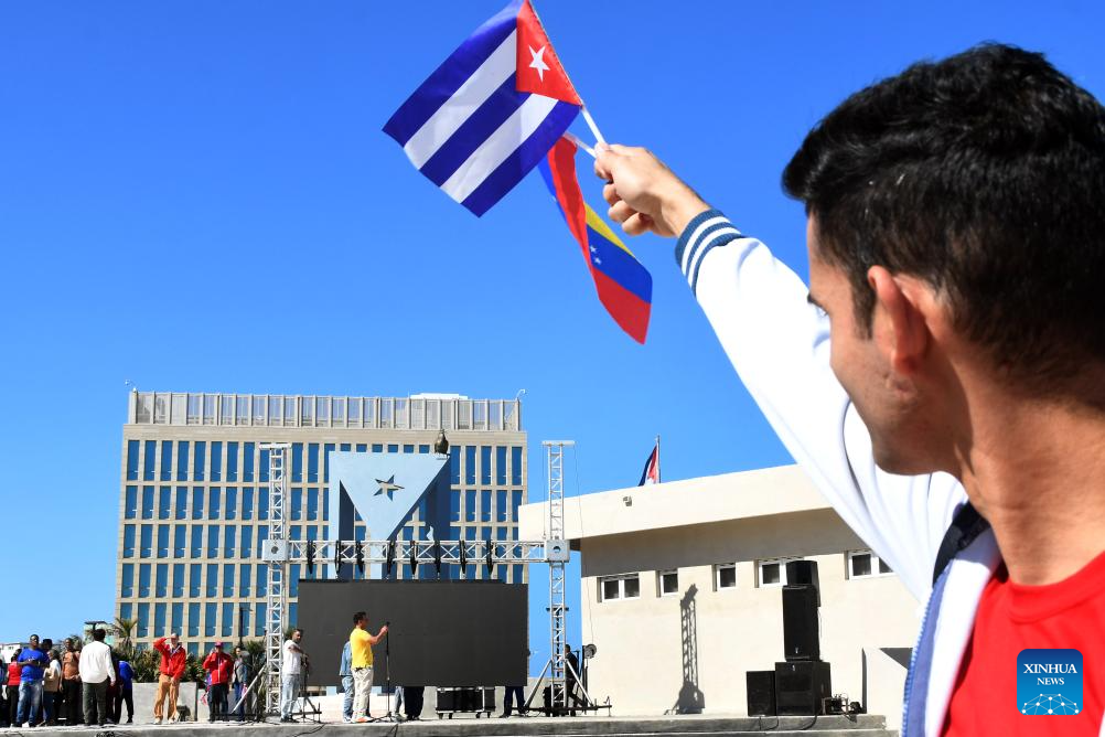 People attend an event condemning the U.S. military aggression against Venezuela in Havana, capital of Cuba, Jan. 3, 2026. (Photo by Joaquin Hernandez/Xinhua)
