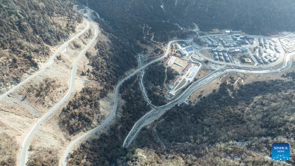 An aerial drone photo taken on Feb. 5, 2026 shows a view of Yumai Town and surrounding highways in Lhunze County of Shannan City, southwest China’s Xizang Autonomous Region. Yumai Town, located on the southern foot of the Himalayas, was once home to merely three permanent residents due to its harsh and rugged terrain. Today, residential houses here are neatly arranged, with comprehensive infrastructure including drainage and communication facilities in place.