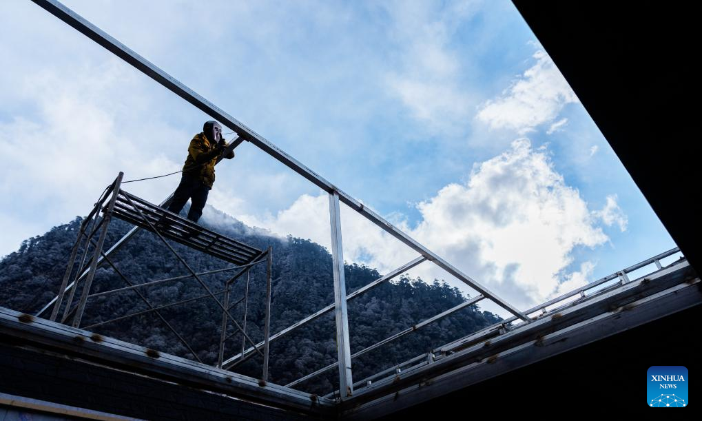 A villager welds the steel framework for the ceiling of a residence in Yumai Town of Lhunze County in Shannan City, southwest China’s Xizang Autonomous Region, Feb. 5, 2026. Yumai Town, located on the southern foot of the Himalayas, was once home to merely three permanent residents due to its harsh and rugged terrain. Today, residential houses here are neatly arranged, with comprehensive infrastructure including drainage and communication facilities in place.