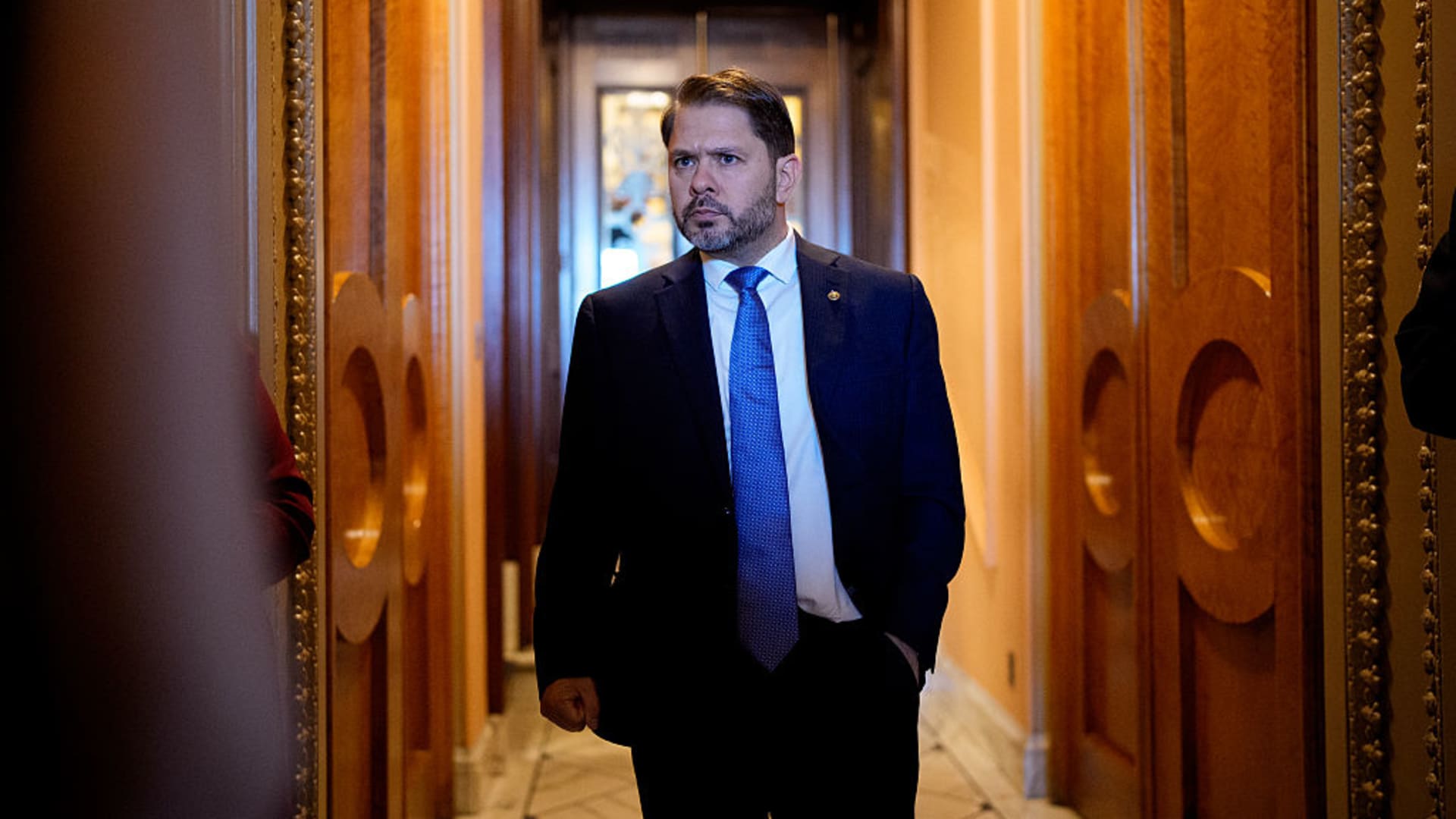 Sen. Ruben Gallego (D-AZ) walks out of the Senate Chamber of the U.S. Capitol Building on Oct. 1, 2025 in Washington, DC.