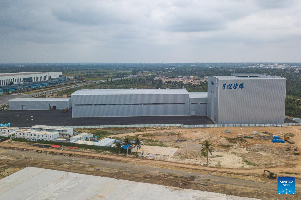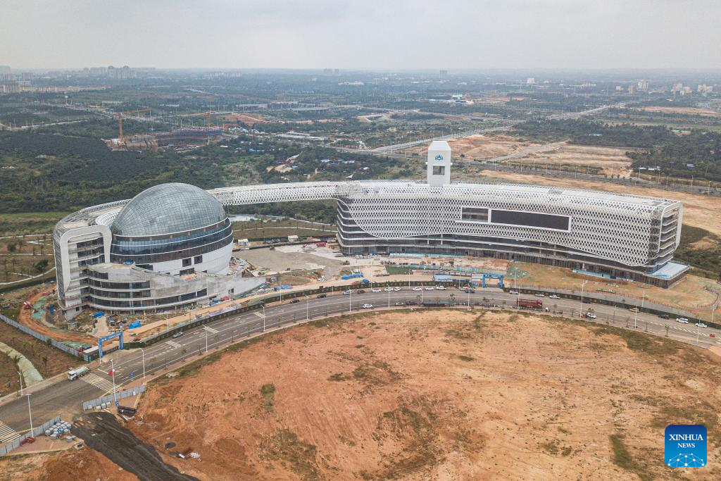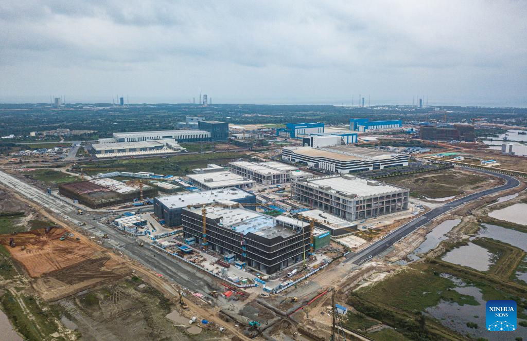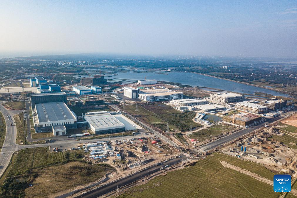 An aerial drone photo taken on Dec. 26, 2025 shows a view of the aerospace industrial cluster under construction, with the Hainan commercial spacecraft launch site and the Wenchang Spacecraft Launch Site in the background, in Wenchang, south China’s Hainan Province. (Xinhua/Pu Xiaoxu)