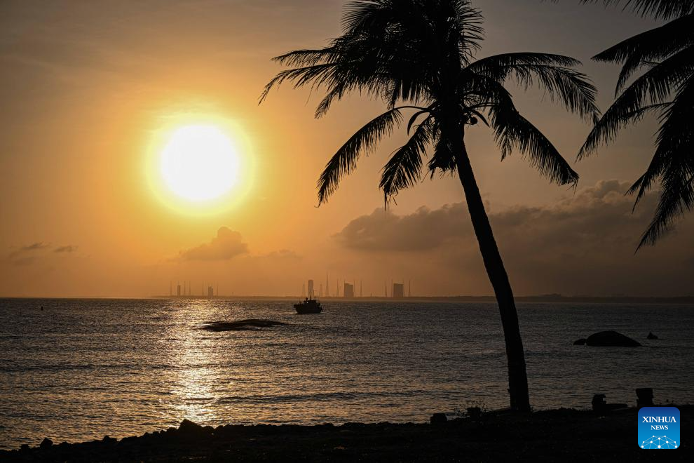 This photo taken on Dec. 24, 2025 on the beach in Wenchang City, south China’s Hainan Province shows a view of the Wenchang Spacecraft Launch Site and the Hainan commercial spacecraft launch site. (Xinhua/Pu Xiaoxu)