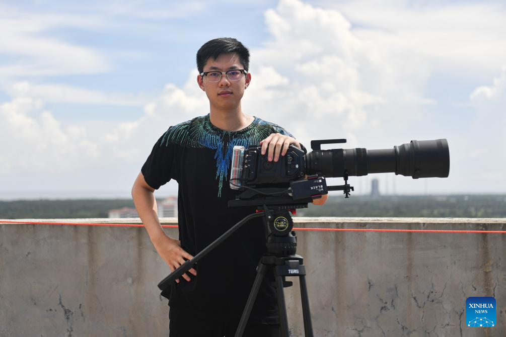 Jin Yuchang, an aerospace enthusiast, shows the movie camera he purchased to film the rocket launch in Wenchang, south China’s Hainan Province, Sept. 19, 2021. (Xinhua/Pu Xiaoxu)