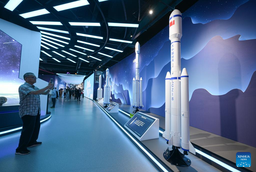 Tourists visit the Wenchang Aerospace Science and Education Center in Wenchang, south China’s Hainan Province, Dec. 23, 2025. (Xinhua/Pu Xiaoxu)