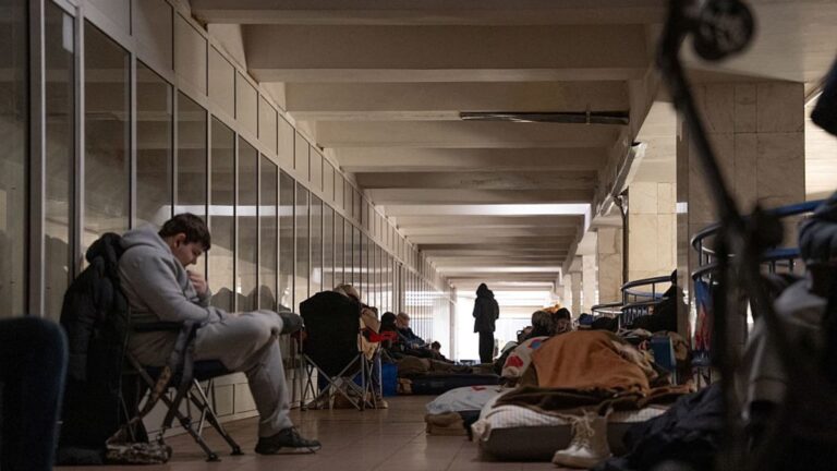 People take shelter at a metro station during Russian air attacks in Kyiv on December 27, 2025, amid the Russian invasion of Ukraine. Ukraine’s air force announced a countrywide air alert and said drones and missiles were moving over several regions including Kyiv. (Photo by Serhii Okunev / AFP via Getty Images)