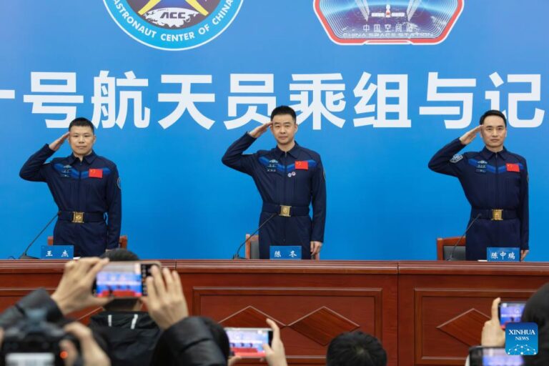 BEIJING, Jan. 16 (Xinhua) — The three astronauts from China’s Shenzhou-20 crewed mission met the press in Beijing on Friday, their first public appearance after returning to Earth in November.