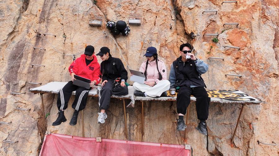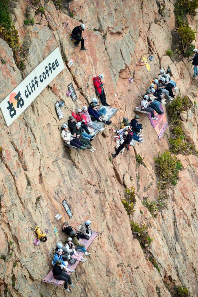 Tourists experience cliff coffee in Gushi Village of Lianjiang County, southeast China’s Fujian Province, Dec. 7, 2025.