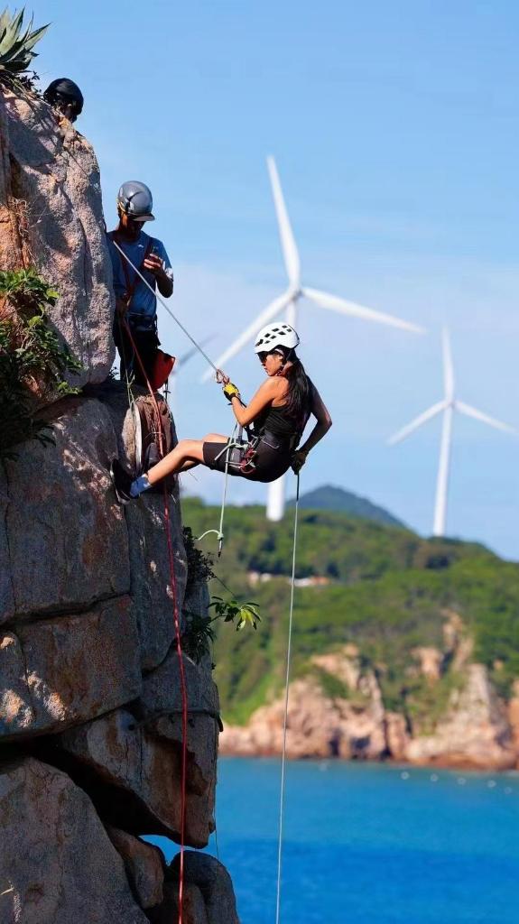 FUZHOU, Dec. 21 (Xinhua) — Ever dreamed of sipping coffee while dangling from a cliff edge? Head to Gushi Village in Lianjiang County, Fujian, where via ferrata climbing meets coffee tasting! Launched in 2024, this innovative project lets you take on heart-pounding climbs, snap pro-level photos, and savor coffee with panoramic sea views. It’s adventure plus chill – the ultimate “half mountain, half sea” vibe!