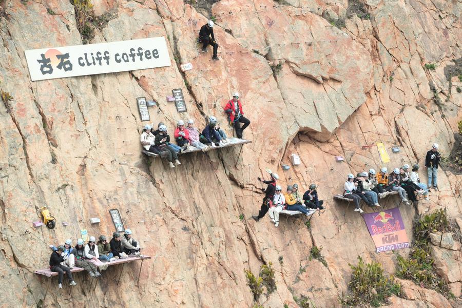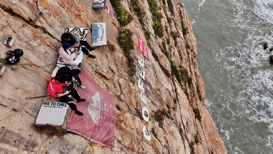 Tourists have fun at the coastal walkway in Gushi Village of Lianjiang County, southeast China’s Fujian Province, in September 2025.Tourists experience cliff coffee in Gushi Village of Lianjiang County, southeast China’s Fujian Province, Dec. 7, 2025.Tourists experience cliff coffee in Gushi Village of Lianjiang County, southeast China’s Fujian Province, Dec. 7, 2025.The cliff coffee shop attracts flocks of tourists during the Spring Festival holiday in 2025, in Gushi Village of Lianjiang County, southeast China’s Fujian Province.Tourists from America, Colombia and Spain have fun at the coastal area in Gushi Village to experience via ferrata climbing and cliff coffee, in Lianjiang County, southeast China’s Fujian Province, in November 2024.A tourist experiences via ferrata climbing in Gushi Village of Lianjiang County, southeast China’s Fujian Province, in October 2024.Arthur (front), the project manager of the Gushi Village Cliff Coffee, and his friend play music on the cliff at sunrise in Gushi Village, Lianjiang County, southeast China’s Fujian Province, in November 2024.Tourists experience cliff coffee in Gushi Village of Lianjiang County, southeast China’s Fujian Province, Dec. 7, 2025.Tourists experience cliff coffee in Gushi Village of Lianjiang County, southeast China’s Fujian Province, March 11, 2025.Tourists experience cliff coffee in Gushi Village of Lianjiang County, southeast China’s Fujian Province, Dec. 7, 2025.Tourists experience cliff coffee in Gushi Village of Lianjiang County, southeast China’s Fujian Province, Dec. 7, 2025.Tourists experience cliff coffee in Gushi Village of Lianjiang County, southeast China’s Fujian Province, March 11, 2025.Tourists experience cliff coffee in Gushi Village of Lianjiang County, southeast China’s Fujian Province, Dec. 7, 2025.Tourists experience cliff coffee in Gushi Village of Lianjiang County, southeast China’s Fujian Province, March 11, 2025.Tourists have fun at the coastal area in Gushi Village to experience via ferrata climbing and cliff coffee, in Lianjiang County, southeast China’s Fujian Province, Aug. 15, 2025.This photo shows a view of Gushi Village of Lianjiang County, southeast China’s Fujian Province, Aug. 15, 2025.■