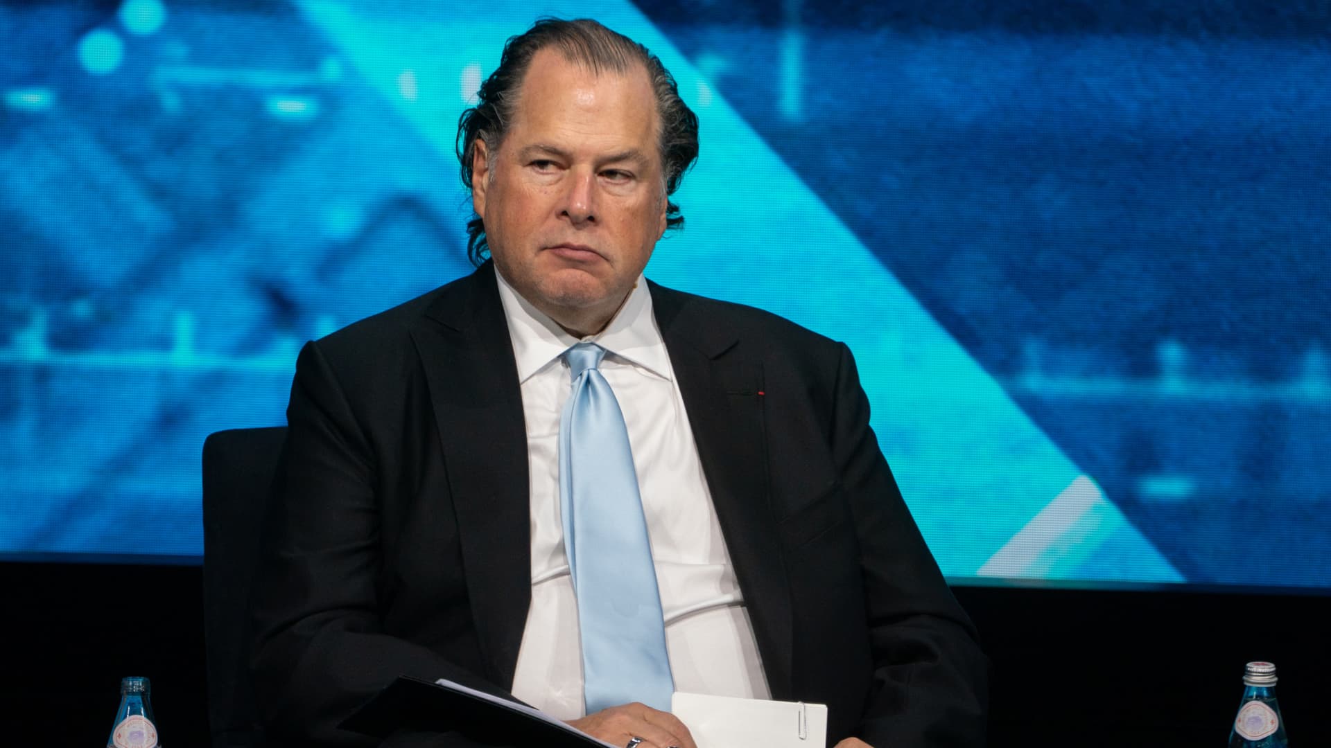 Salesforce CEO Marc Benioff appears at the US-Saudi Investment Forum at the Kennedy Center in Washington on Nov. 19, 2025.