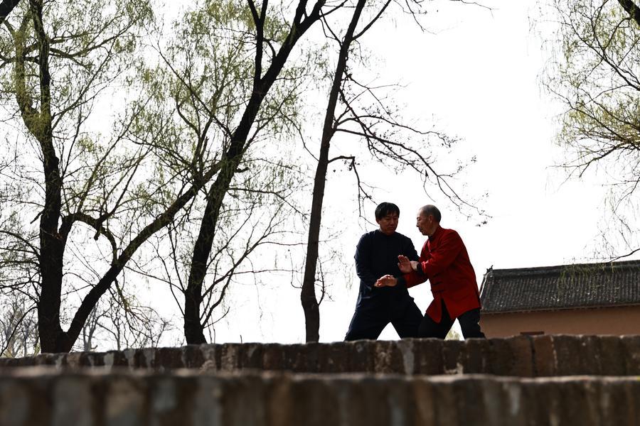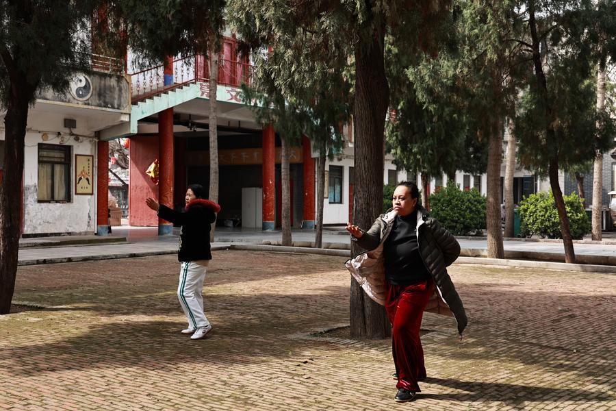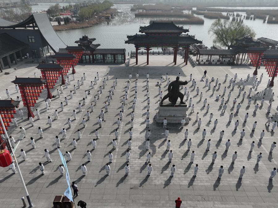 People practice Taijiquan, a kind of Chinese traditional martial arts, in Chenjiagou Village of Wenxian County, central China’s Henan Province, March 19, 2026. (Xinhua/Ren Zhuoru)