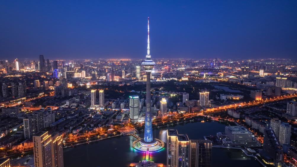 This photo taken on June 20, 2025 shows a city view at night in north China’s Tianjin Municipality. (Xinhua/Sun Fanyue)